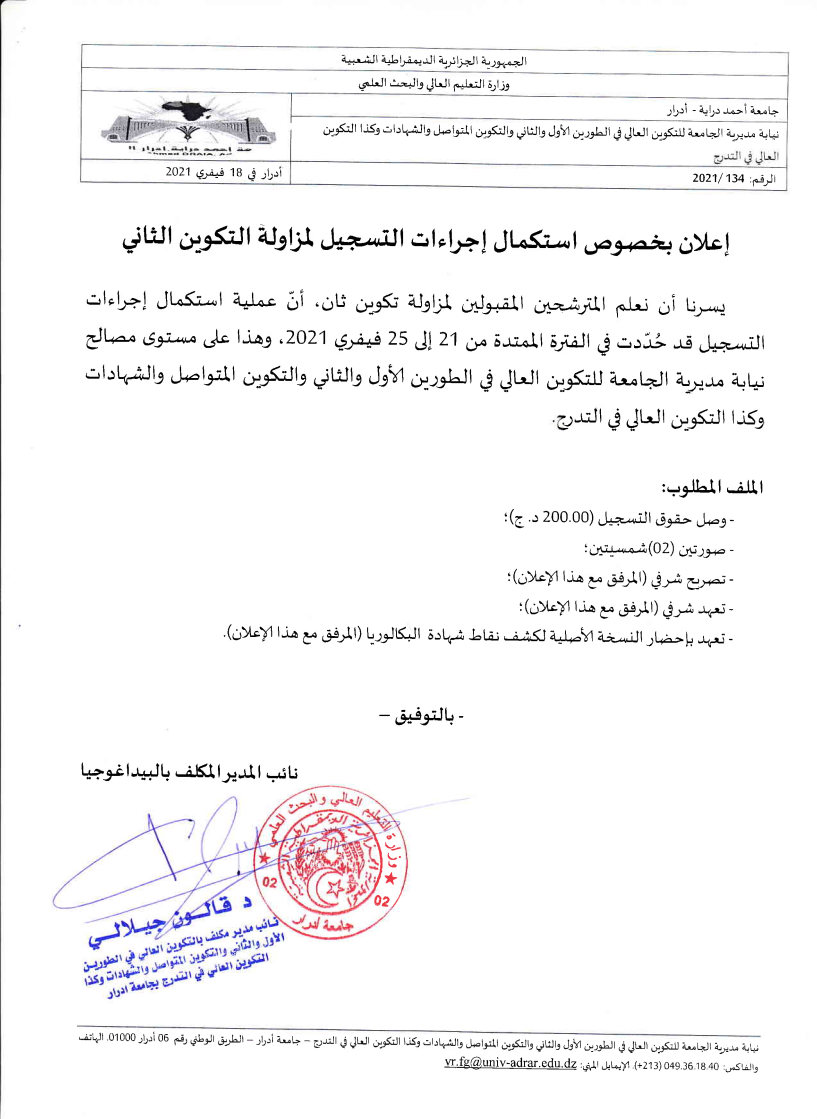 إعلان بخصوص استكمال إجراءات التسجيل لمزاولة التكوين الثاني طلب تحويل كشف نقاط البكالوريا للمقبولين في مزاولة تكوين ثان تعهد بإحضار كشف نقاط البكالوريا الأصلية تــــعهد شــــرفـــي من أجل مزاولة التكوين الثاني 1٬744 Share FacebookGoogle+البريد الإلكترونيTwitter