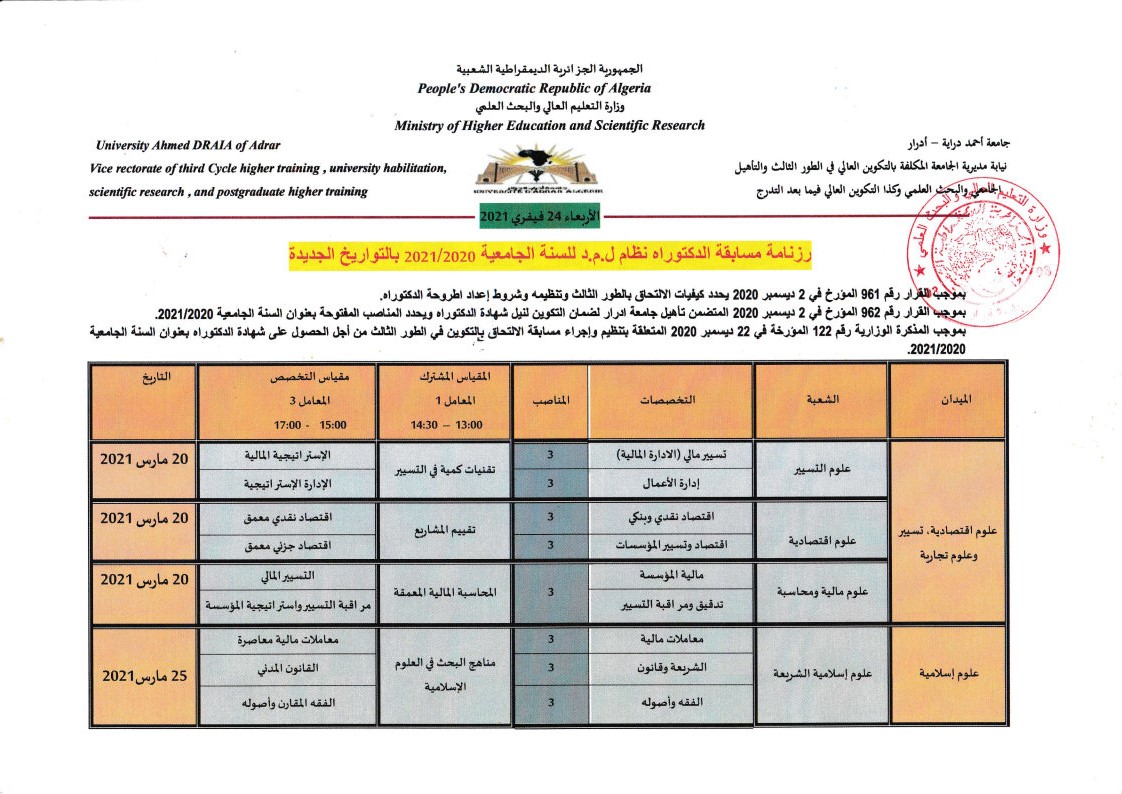 رزنامة مسابقة الدكتوراه نظام ل.م.د للسنة الجامعية 2021/2020 بالتواريخ الجديدة رزنامة مسابقة الدكتوراه نظام ل.م.د للسنة الجامعية 2021/2020 بالتواريخ الجديدة 3٬940 Share FacebookGoogle+البريد الإلكترونيTwitter