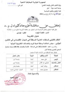 ” النظام القانوني للسلطات الادارية المستقلة في المجال الاقتصادي في القانون الجزائري , مجلس المنافسة وسلطة ضبط البريد والاتصالات الالكترونية أنموذجا “. 1٬243 Share FacebookGoogle+البريد الإلكترونيTwitter