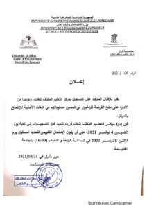 إعلان مستعجل حول التسجيل بمركز التعليم المكثف للغات 1٬440 Share FacebookGoogle+البريد الإلكترونيTwitter