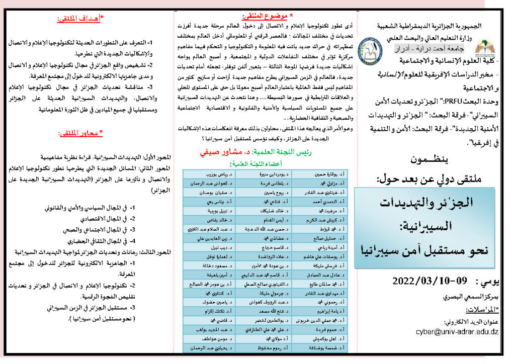 ملتقى دولي: الجزائر والتهديدات السيبرانية: نحو مستقبل آمن سيبرانيا
