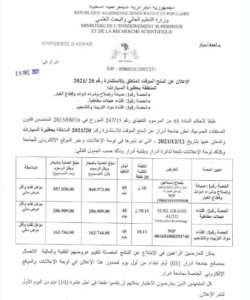 الإعلان عن المنح المؤقت المتعلق بالاستشارة رقم 20/2021 المتعلقة بحظيرة السيارات 939 Share FacebookGoogle+البريد الإلكترونيTwitter