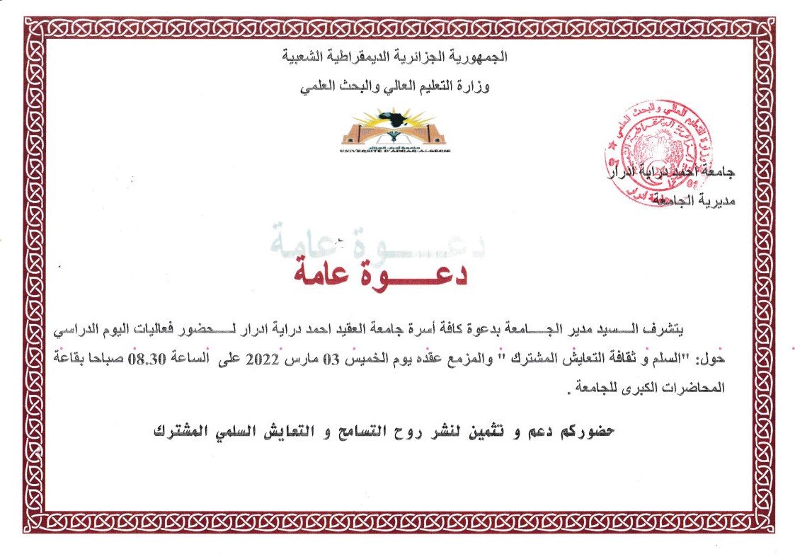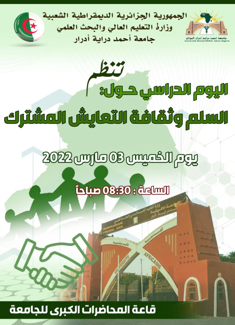 دعوة لحضور فعاليات اليوم الدراسي حول: السلم وثقافة التعايش المشترك 7٬265 Share FacebookGoogle+البريد الإلكترونيTwitter