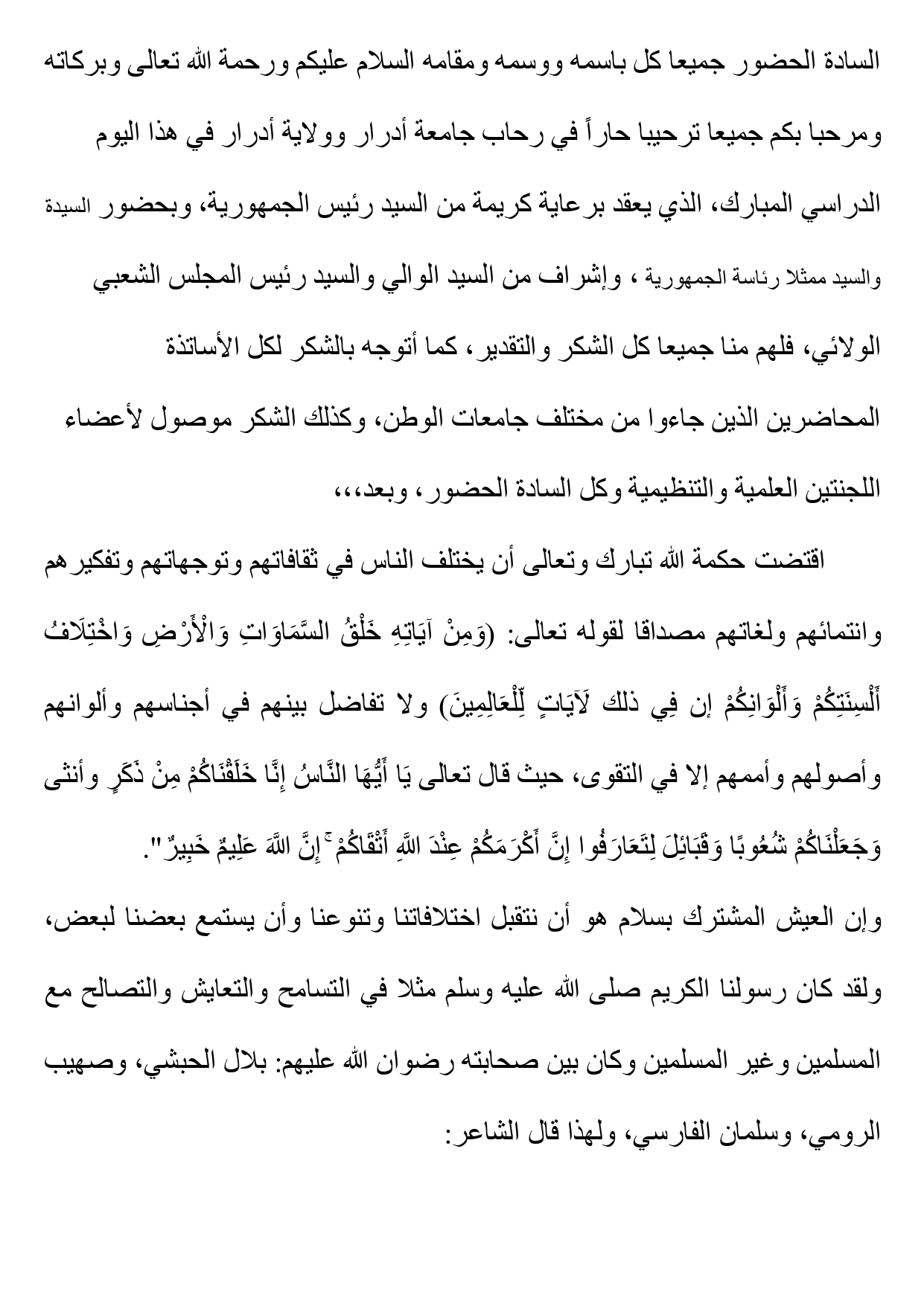 كلمة السيد مدير الجامعة بمناسبة افتتاح فعاليات اليوم الدراسي حول: السلم وثقافة التعايش المشترك 6٬395 Share FacebookGoogle+البريد الإلكترونيTwitter