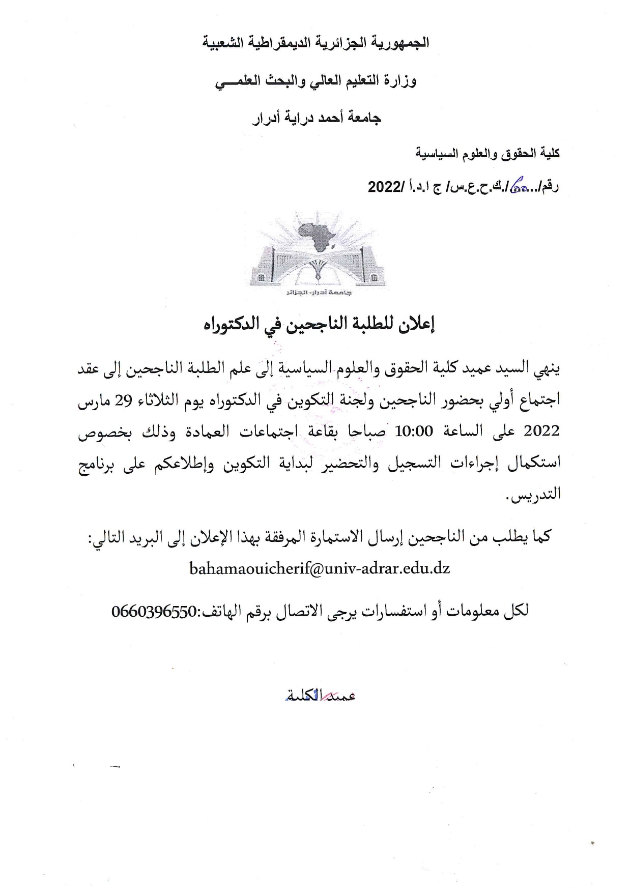 اعلان للطلبة الناجحين في الدكتوراه استمارة معلومات طالب الدكتوراه 1٬048 Share FacebookGoogle+البريد الإلكترونيTwitter