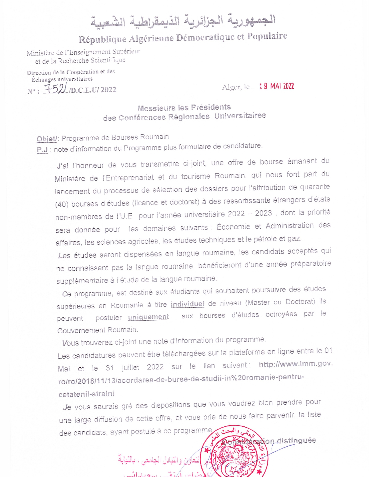 Offre de bourses d’études en Roumanie Pour télécharger :1- note information en français 2- note information 912 Share FacebookGoogle+البريد الإلكترونيTwitter