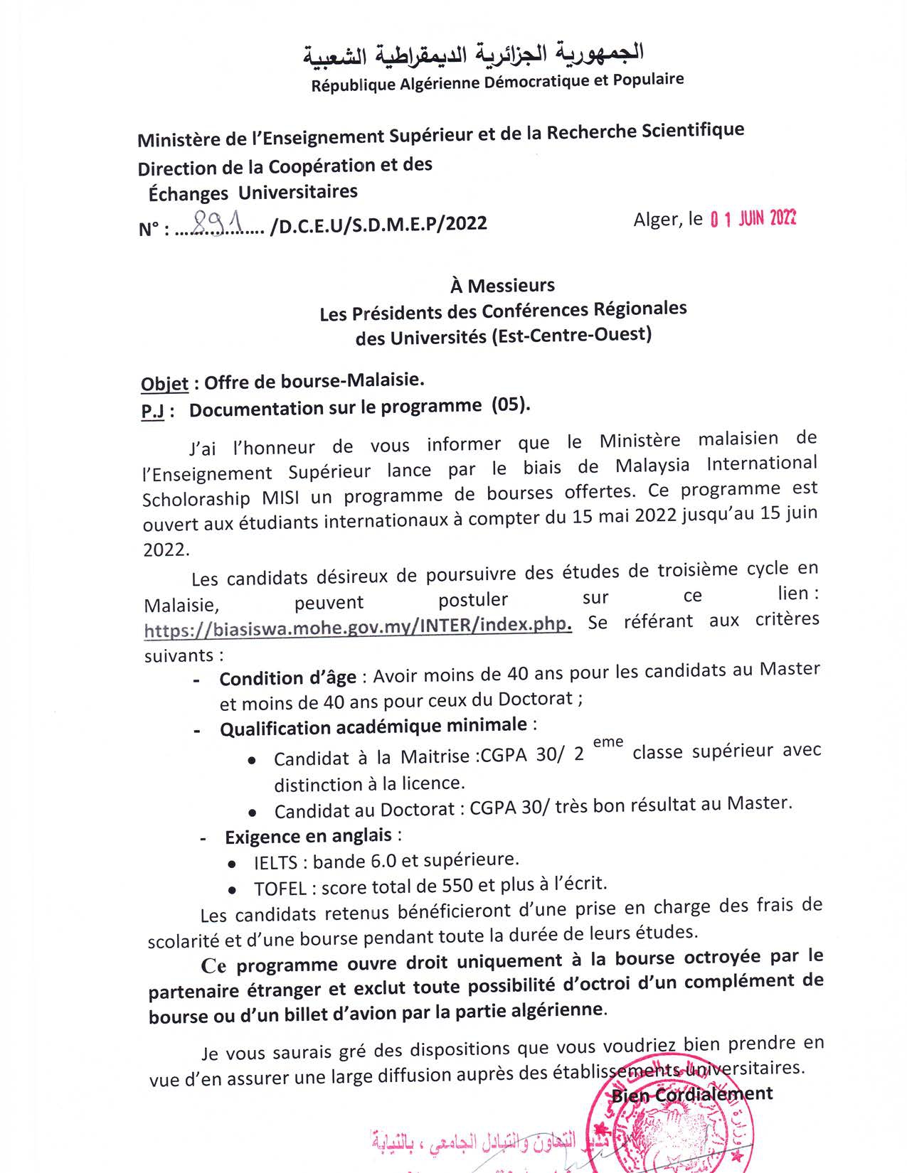 Offre de Bourse Malaisie Pour télécharger : documentation sur le programme 1٬126 Share FacebookGoogle+البريد الإلكترونيTwitter