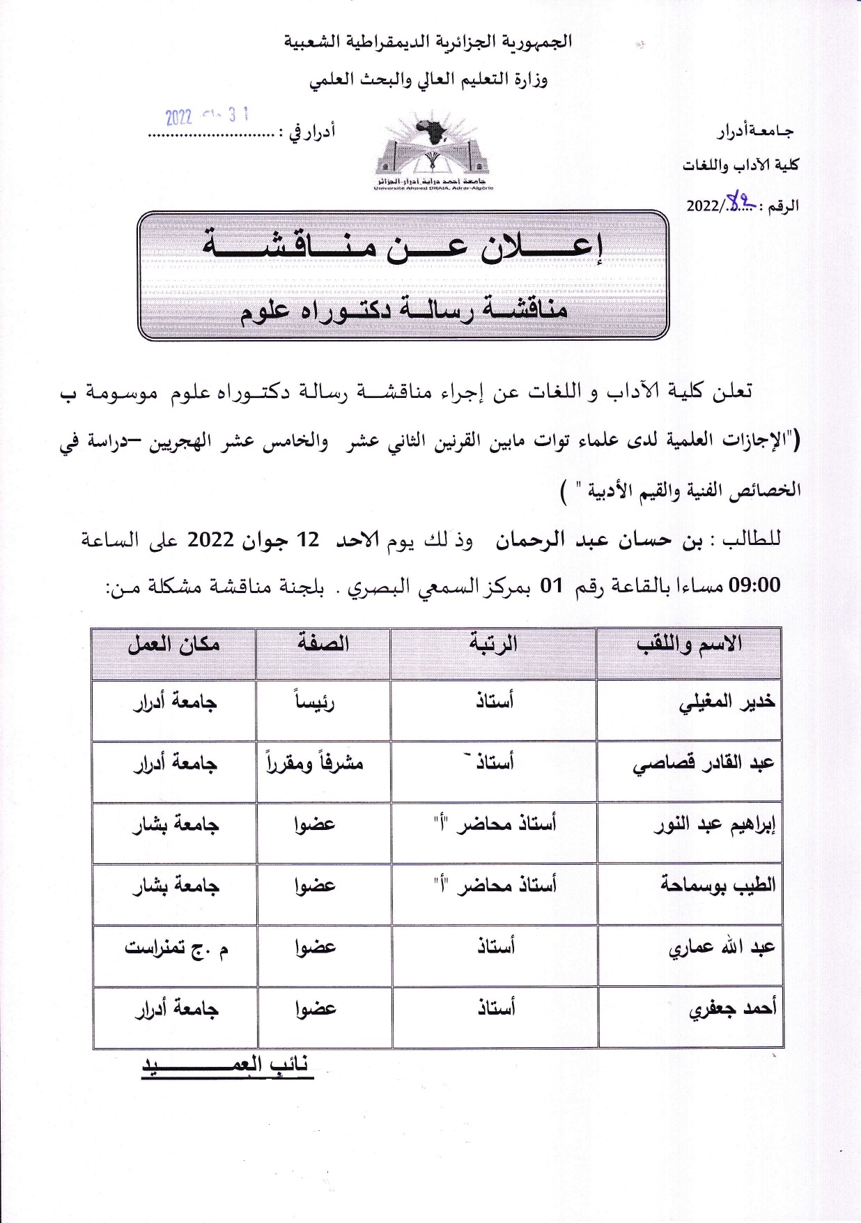 الإجازات العلمية لدى علماء توات مابين القرنين الثاني عشر والخامس عشر الهجرين – دراسة في الخصائص الفنية والقيم الأدبية 772 Share FacebookGoogle+البريد الإلكترونيTwitter