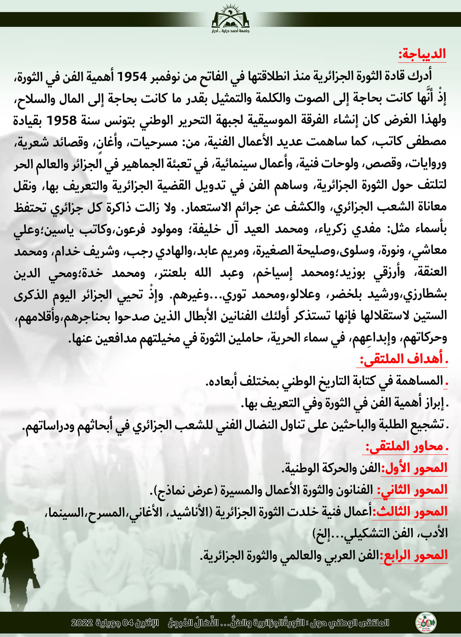 الملتقى الوطني حول الثورة الجزائرية و الفن …النضال المبدع 1٬141 Share FacebookGoogle+البريد الإلكترونيTwitter
