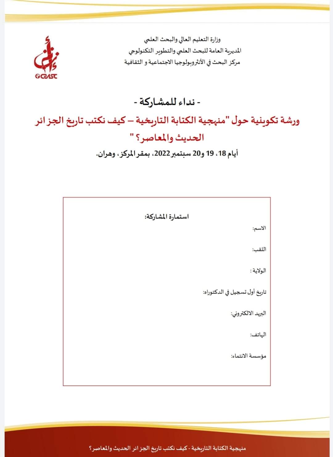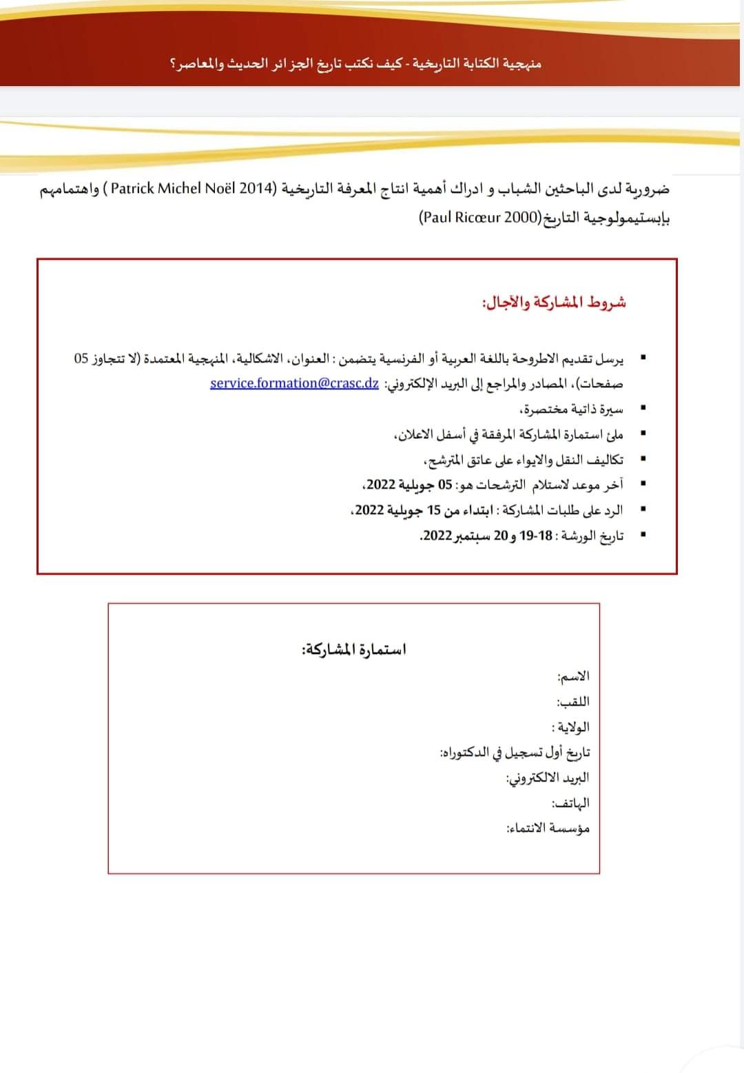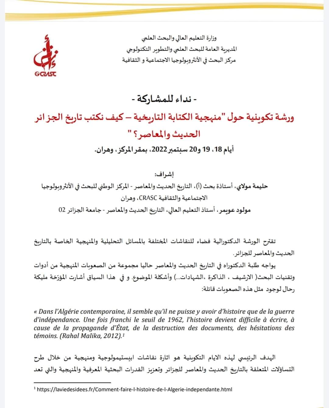 ورشة تكوينية حول “منهجية الكتابة التاريخية – كيف نكتب تاريخ الجزائر الحديث والمعاصر؟ “ 646 Share FacebookGoogle+البريد الإلكترونيTwitter