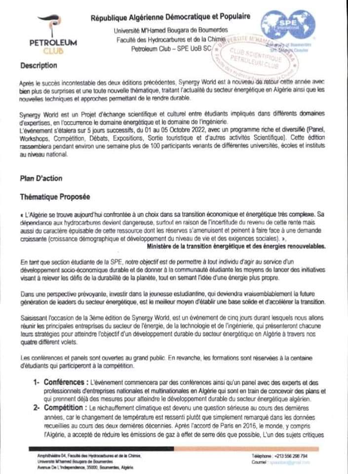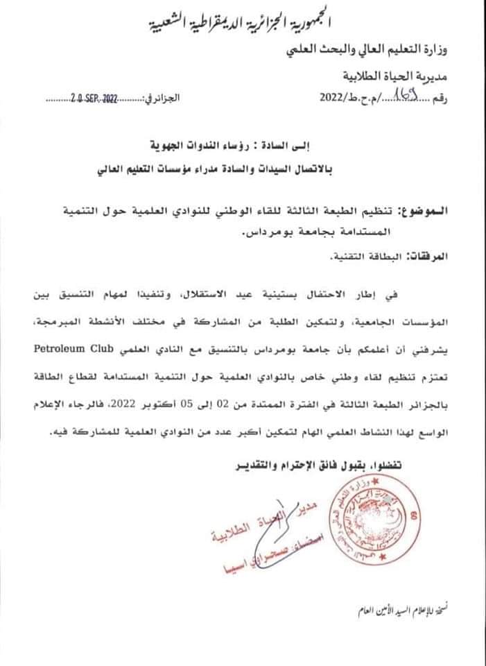 تنظيم الطبعة الثالثة للقاء الوطني للنوادي العلمية حول التنمية المستدامة بجامعة بومرداس 492 Share FacebookGoogle+البريد الإلكترونيTwitter