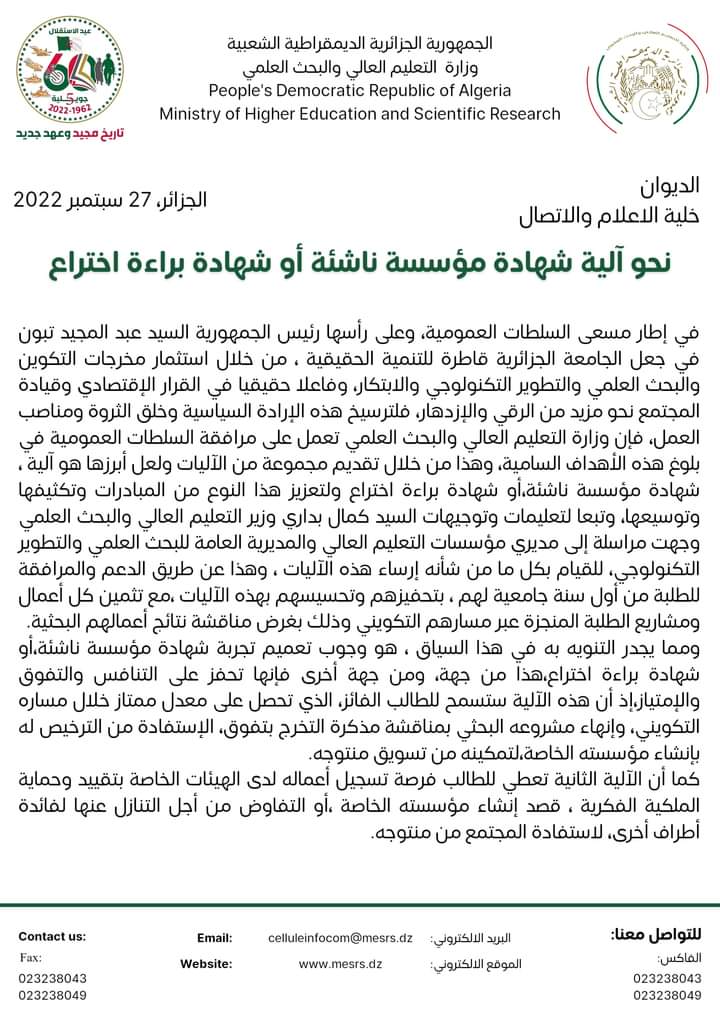 نحو آلية شهادة مؤسسة ناشئة أو شهادة براءة اختراع 1٬920 Share FacebookGoogle+البريد الإلكترونيTwitter