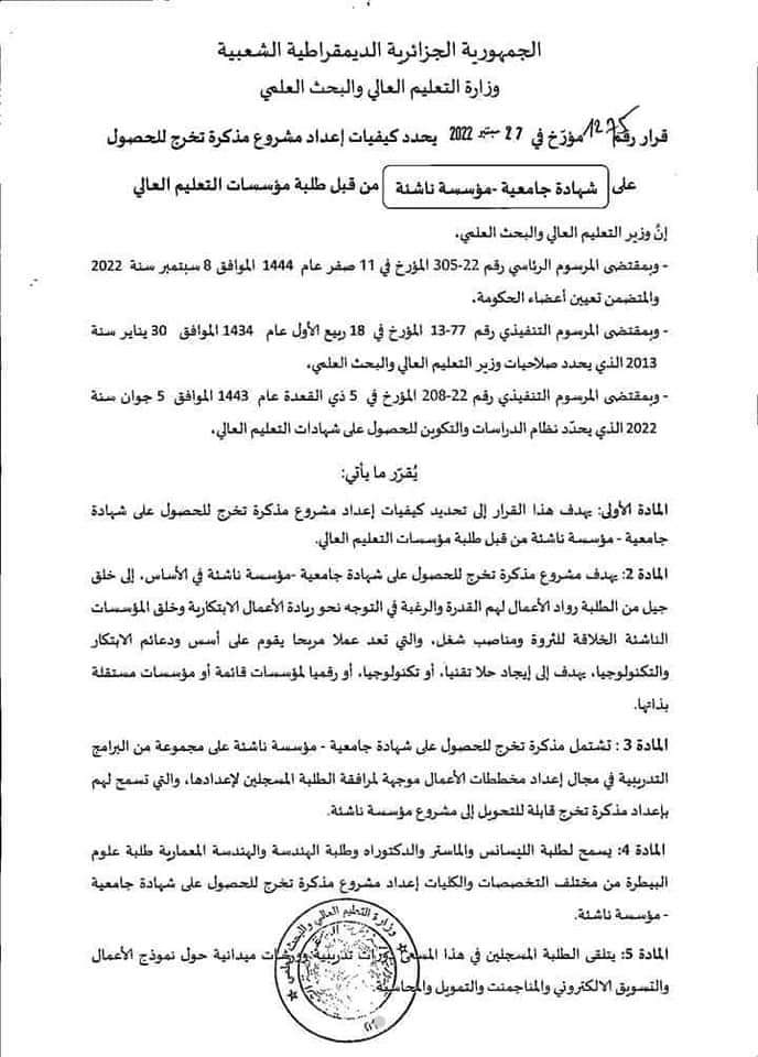 إعداد مشروع مذكرة تخرج للحصول على شهادة جامعية – مؤسسة ناشئة من قبل طلبة مؤسسات التعليم العالي 6٬195 Share FacebookGoogle+البريد الإلكترونيTwitter