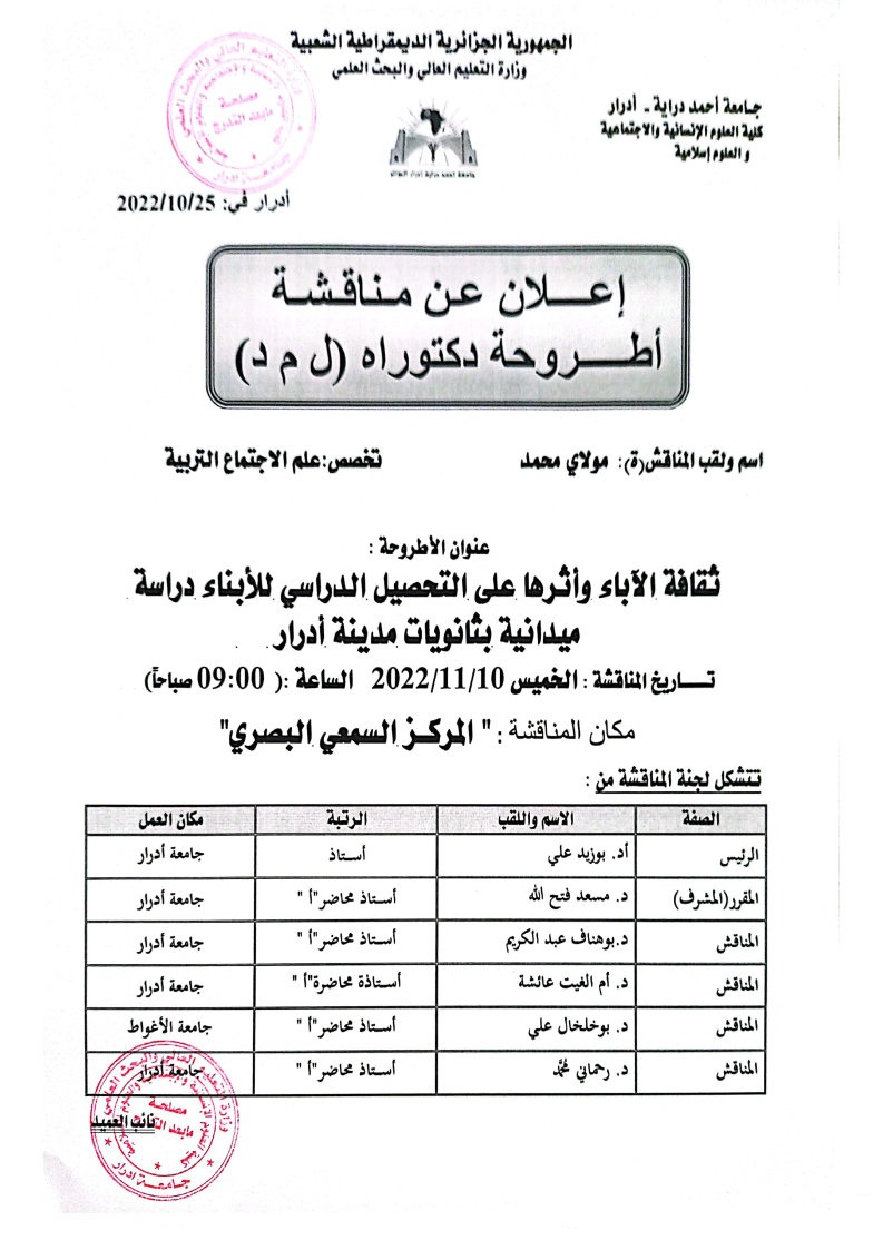 ثقافة الآباء وأثرها على التحصيل الدراسي للأبناء دراسة ميدانية بثانويات مدينة ادرار 819 Share FacebookGoogle+البريد الإلكترونيTwitter