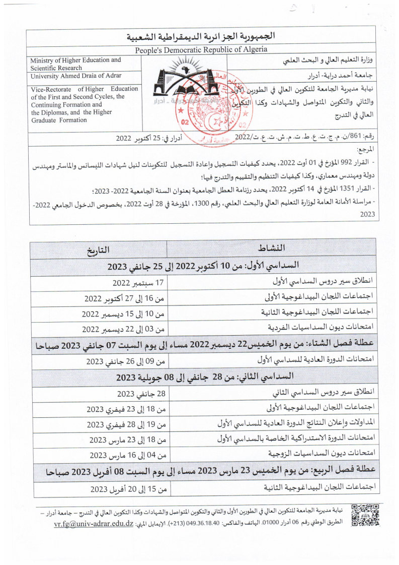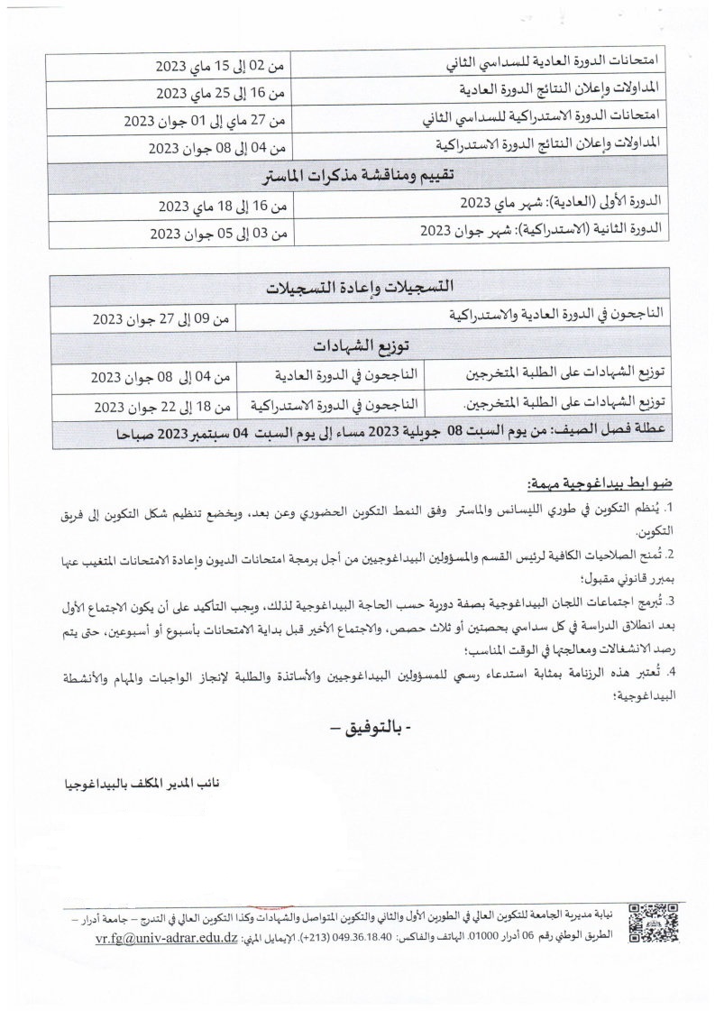 الرزنامة البيداغوجية لسير الموسم الجامعي 2023/2022 14٬978 Share FacebookGoogle+البريد الإلكترونيTwitter