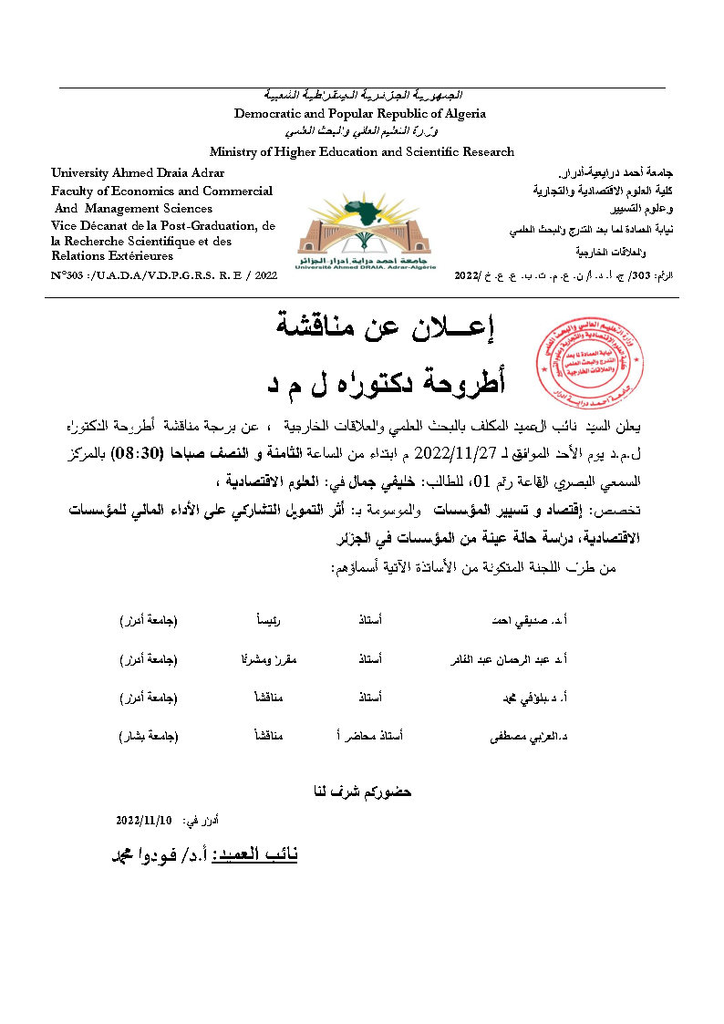 أثر التمويل التشاركي على الأداء المالي للمؤسسات الاقتصادية, دراسة حالة عينة من المؤسسات في الجزائر 901 Share FacebookGoogle+البريد الإلكترونيTwitter