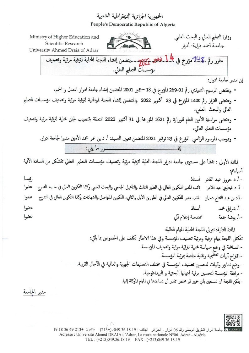 مقرر يتضمن إنشاء اللجنة الوطنية لترقية مرئية وتصنيف مؤسسات التعليم العالي والبحث العلمي 1٬249 Share FacebookGoogle+البريد الإلكترونيTwitter