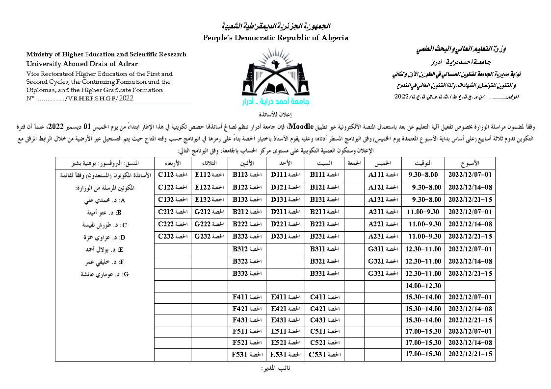 اعلان عن دورة تكوينية لمنصة التعليم عن بعد لفائدة الاساتذة رابط التسجيل في الحصص التكوينية لمنصة التعليم عن بعد 4٬234 Share FacebookGoogle+البريد الإلكترونيTwitter