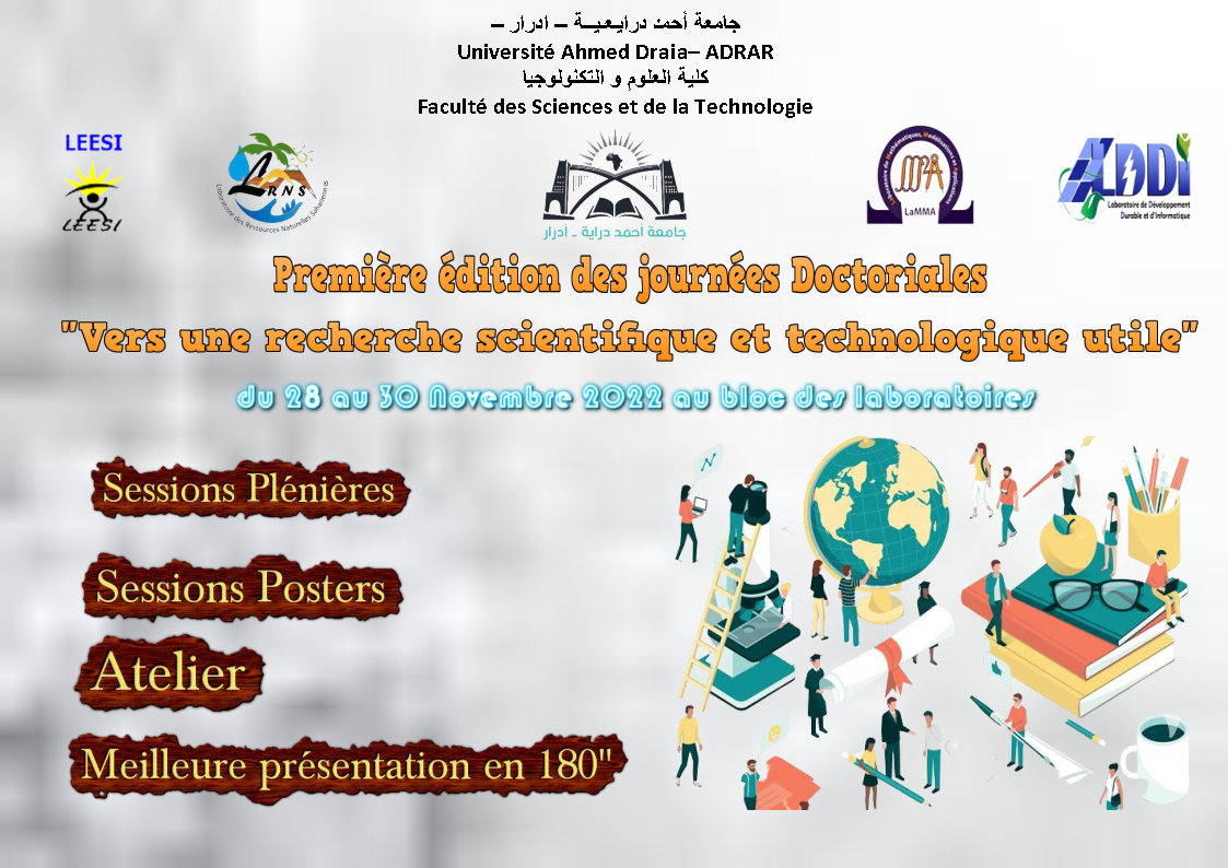 ” Première édition des journées Doctoriales “Vers une recherche scientifique et technologique utile 613 Share FacebookGoogle+البريد الإلكترونيTwitter