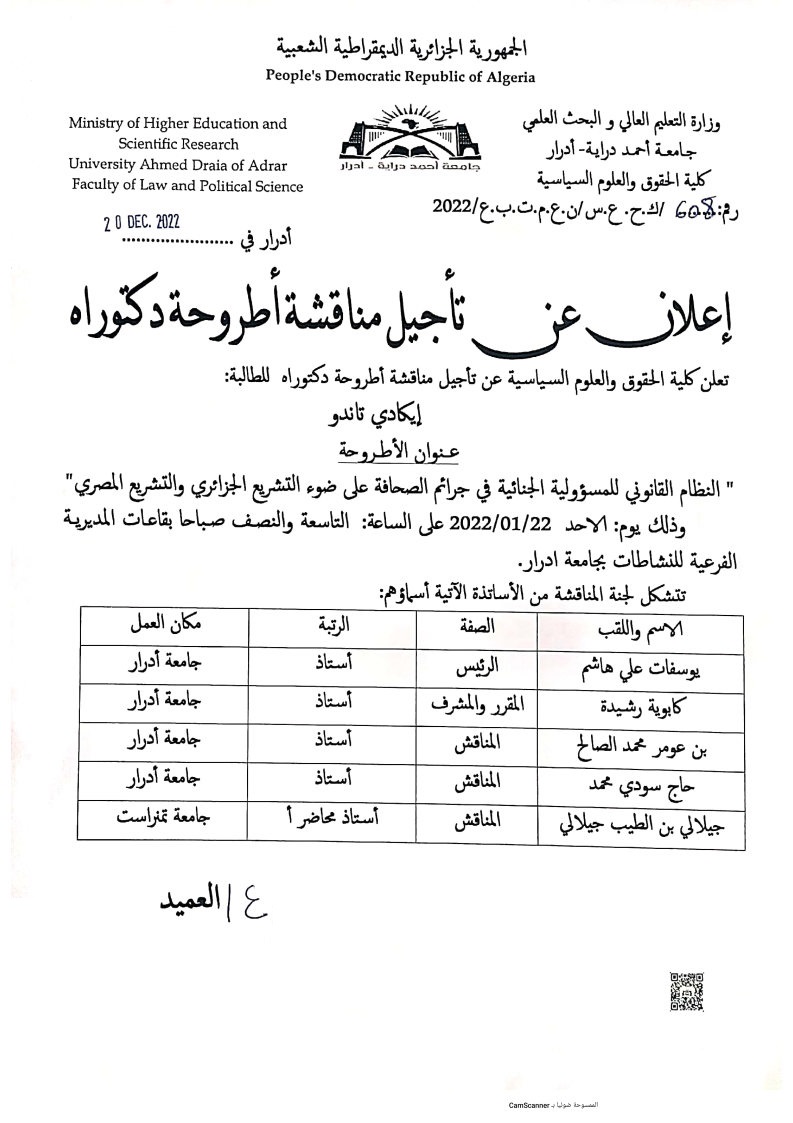 النظام القانوني للمسؤلية الجنائية في جرائم الصحافة على ضوء التشريع الجزائري والتشريع المصري 581 Share FacebookGoogle+البريد الإلكترونيTwitter