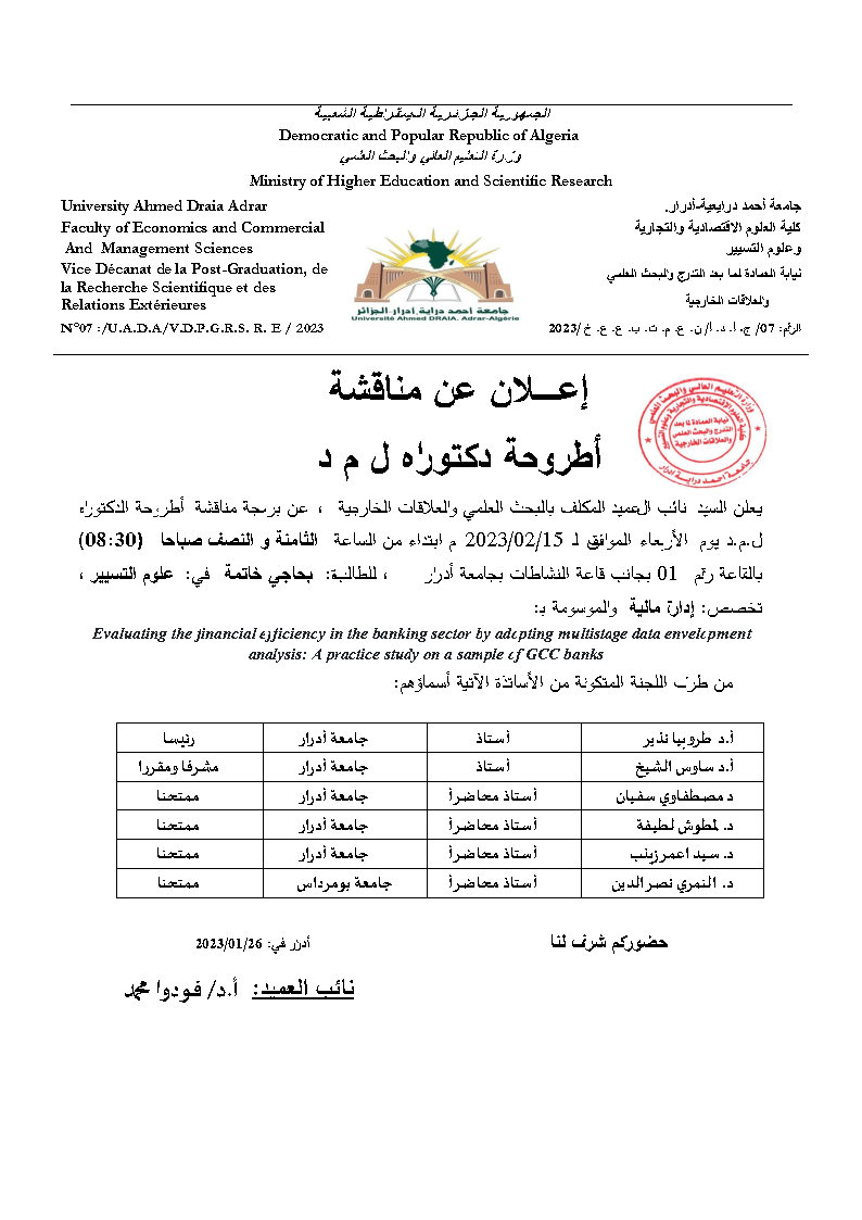 Evaluating the financial efficiency in the banking sector by adopting multistage data envelopment analysis: A practice study on a sample of GCC banks 766 Share FacebookGoogle+البريد الإلكترونيTwitter