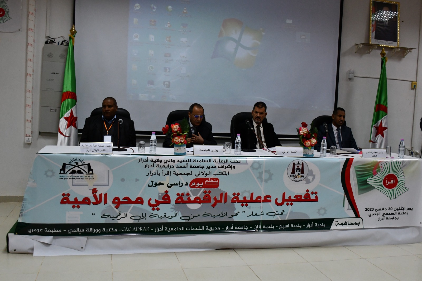 برعاية السيد والي ولاية ادرار وإشراف جامعة ادرار المكتب الولائي لجمعية اقرأ ينظم يوم دراسي بعنوان ” تفعيل عملية الرقمنة في محو الامية “