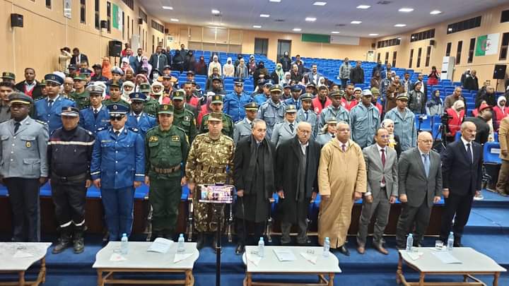 بمناسبة ستينية الإ ستقلال و احياءا للذكرى 63 للتفجيرات النووية الاستعمارية بمنطقة رقان أشرف وزير المجاهدين وذوي الحقوق السيد العيد ربيقة بمعية والي ولاية ادرار السيد العربي بهلول والسيد رئيس المجلس الشعبي الولائي السيد خاي محمد ورئيس جامعة ادرار البروفيسور بن عمر محمد الأمين على فعاليات افتتاح أشغال الملتقى الوطني الموسم ب ” التفجيرات النووية الاستعمارية في حموديا برقان 13فيفري 1960 ” .