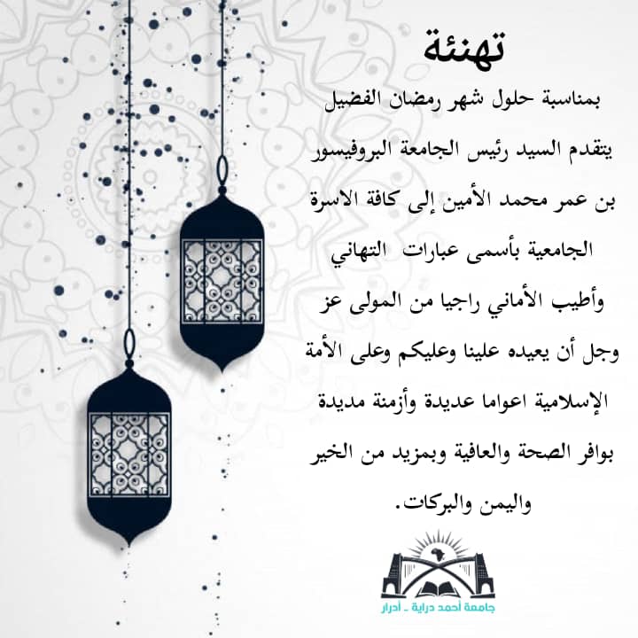 تهنئة السيد رئيس الجامعة بمناسبة حلول شهر رمضان الفضيل 1٬104 Share FacebookGoogle+البريد الإلكترونيTwitter