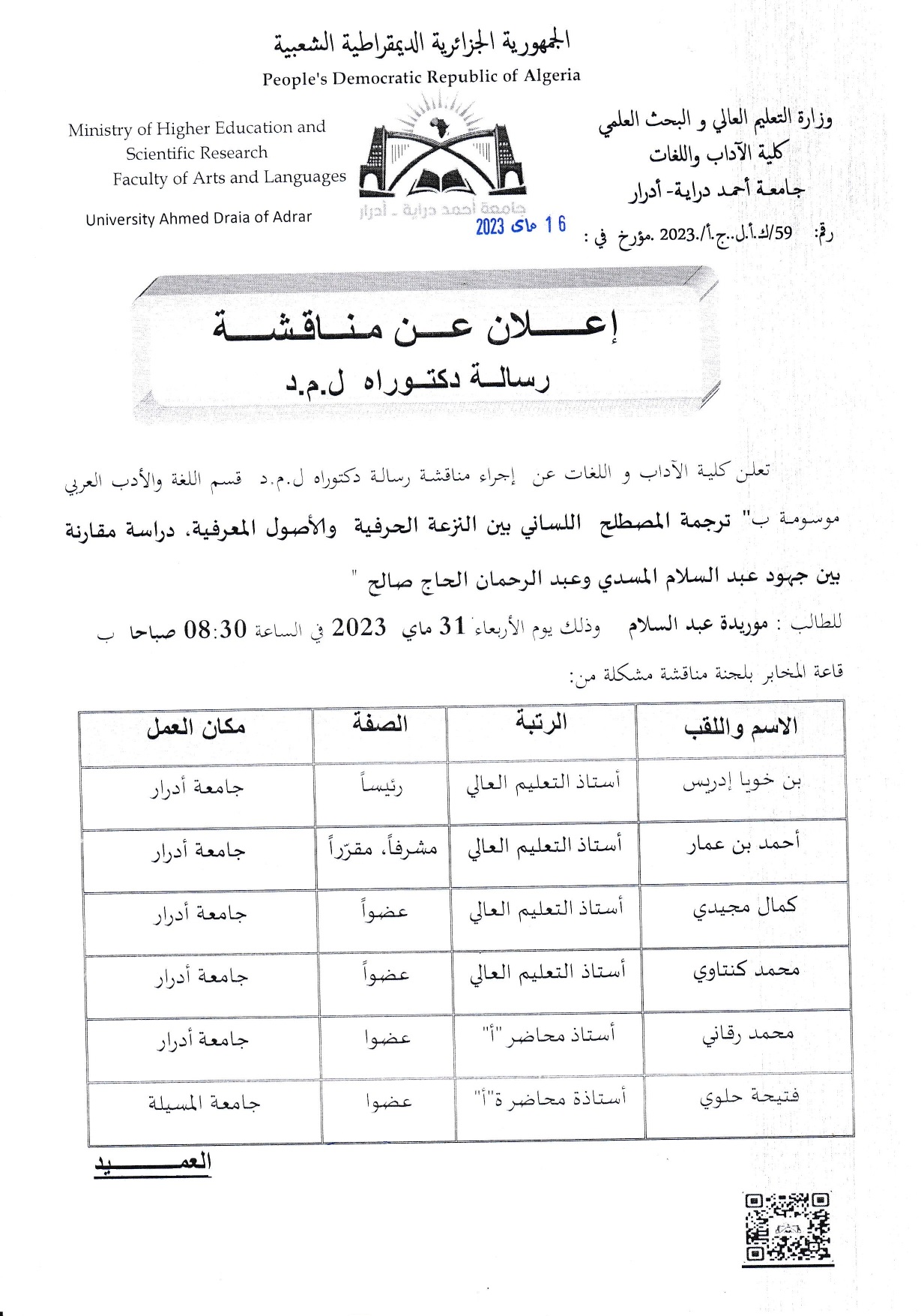 ترجمة المصطلح اللساني بين النزعة الحرفية والأصول المعرفية, دراسة مقارنة بين جهود عبد السلام المسدي وعبد الرحمان الحاج صالح 713 Share FacebookGoogle+البريد الإلكترونيTwitter