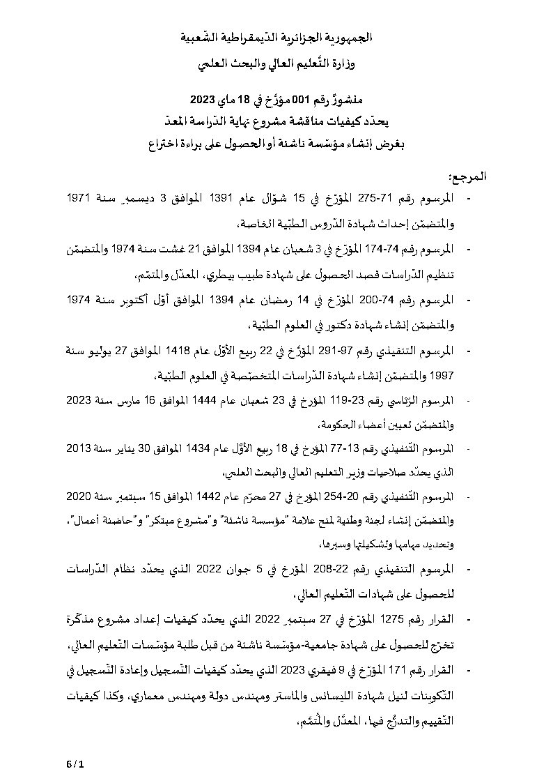 منشور يحدد كيفيات مناقشة مشروع نهاية الدراسة المعد بغرض إنشاء مؤسسة ناشئة أو الحصول على براءة اختراع لتحميل المنشور : منشور يحدد كيفيات مناقشة مشروع نهاية الدراسة المعد بغرض إنشاء مؤسسة ناشئة أو الحصول على براءة اختراع 2٬204 Share FacebookGoogle+البريد الإلكترونيTwitter