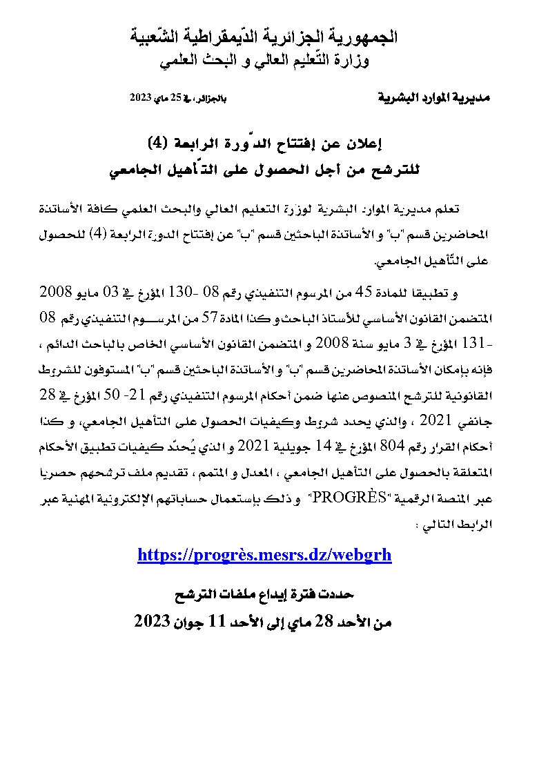 إعلان عن إفتتاح الدّورة الرابعة 4 للترشح من أجل الحصول على التّأهيل الجامعي 1٬229 Share FacebookGoogle+البريد الإلكترونيTwitter