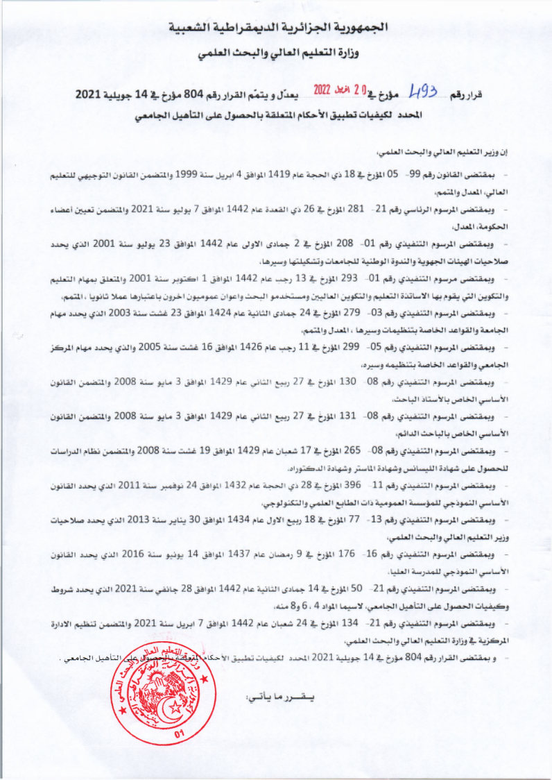 التأهيل الجامعي للتحميل : القرار رقم 493 المحدد لكيفيات تطبيق الأحكام المتعلقة بالحصول على التأهيل الجامعي. القرار رقم 804 المحدد لكيفيات تطبيق الأحكام المتعلقة بالحصول على التأهيل الجامعي. شروط التأهيل الجامعي . استمارة الترشح للتأهيل الجامعي. 1٬466 Share FacebookGoogle+البريد الإلكترونيTwitter