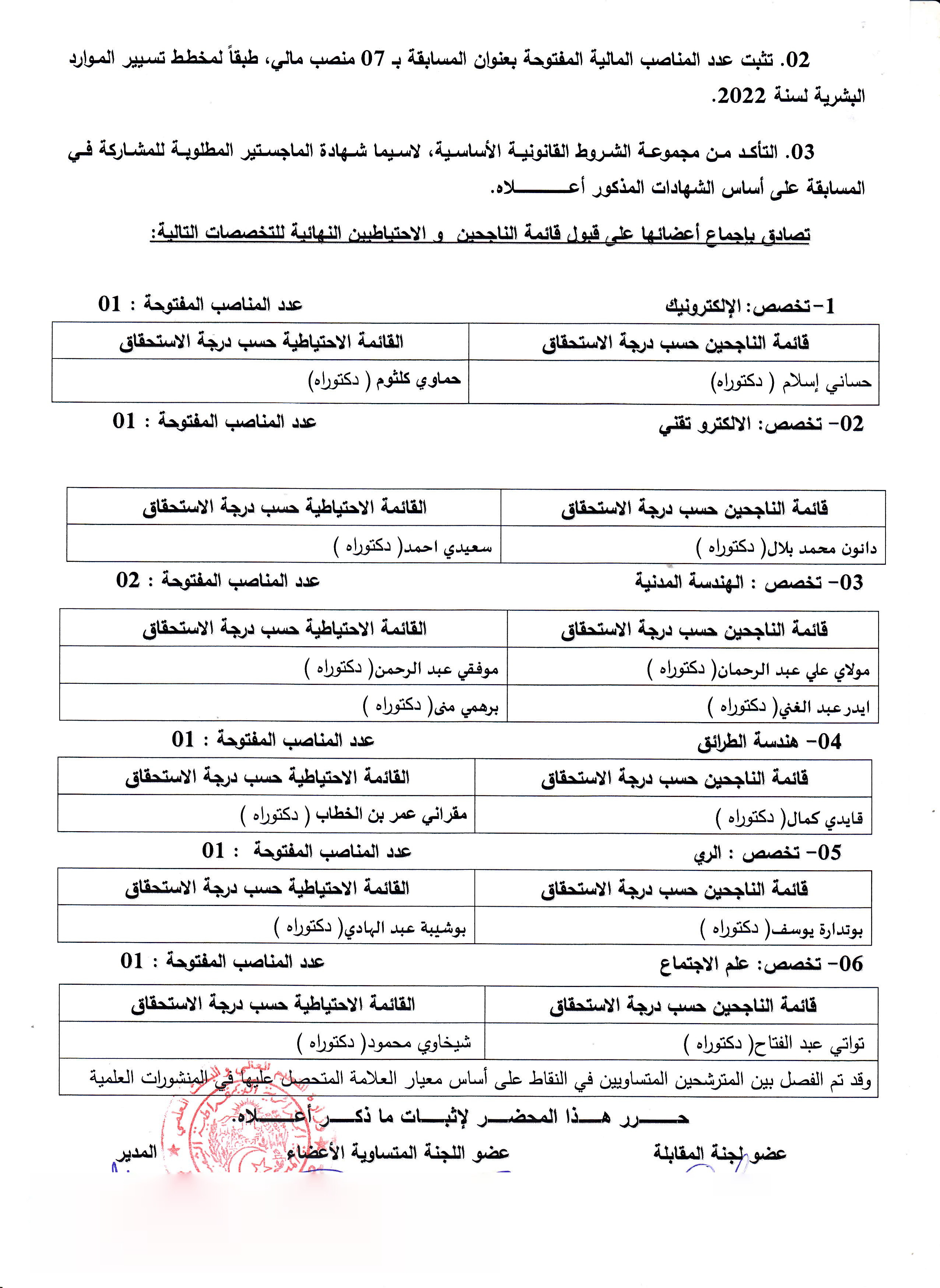 قائمة الناجحين نهائيا في المسابقة على أساس الشهادات للالتحاق بسلك الأساتذة المساعدين رتبة: أستاذ مساعد ب هندسة الطرائق الري الكتروتقني الكترونيك همدسة مدنية علم الاجتماع 11٬616 Share FacebookGoogle+البريد الإلكترونيTwitter