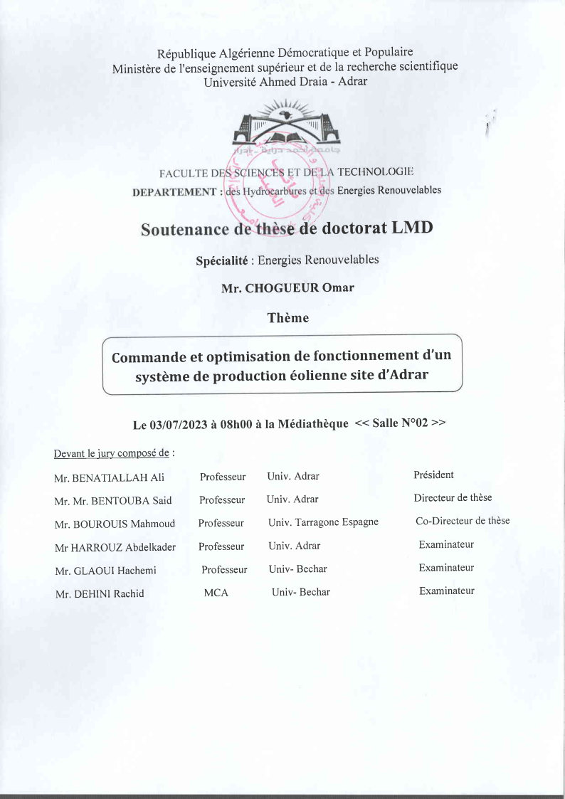 Commande et optimisation de fonctionnement d’un système de production éolienne site d’Adrar 666 Share FacebookGoogle+البريد الإلكترونيTwitter