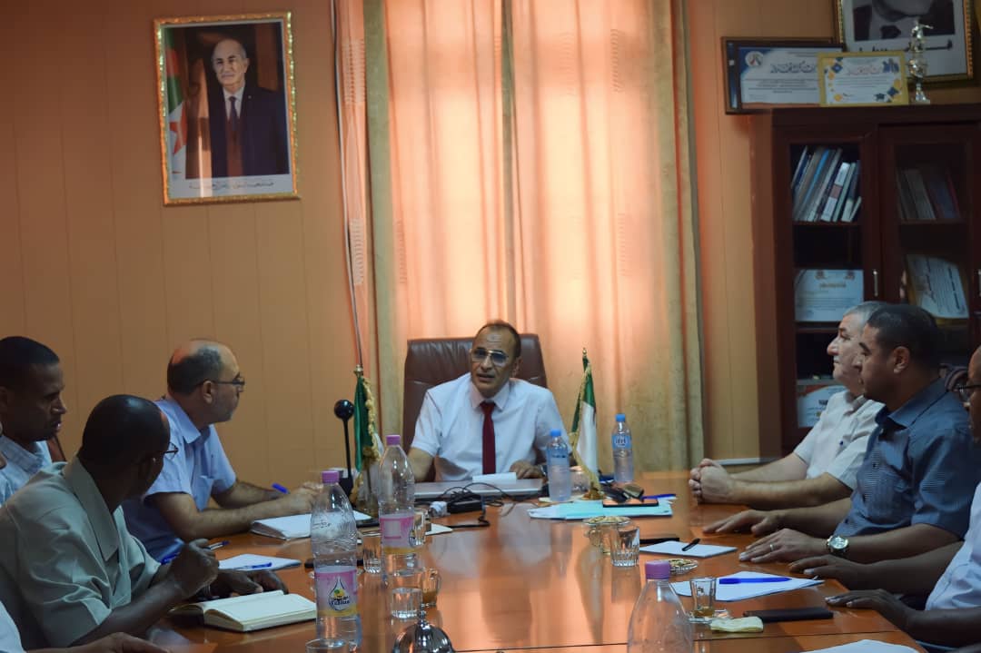 اجتماع مجلس مديرية جامعة أدرار جاء تنفيدا لتعليمات وزير التعليم العالي والبحث العلمي أ.د بداري كمال التي اقرها خلال إجتماعه الاخير يوم 04-09-2023 مع رؤساء المؤسسات الجامعية و رؤساء الندوات الجهوية و ممثلي النقابات الوطنية للأساتذة و العمال من أجل ضمان دخول جامعي ناجح و متابعة اجراءات تنفيد خطة العمل الوزارية متابعة دقيقة و ميدانية