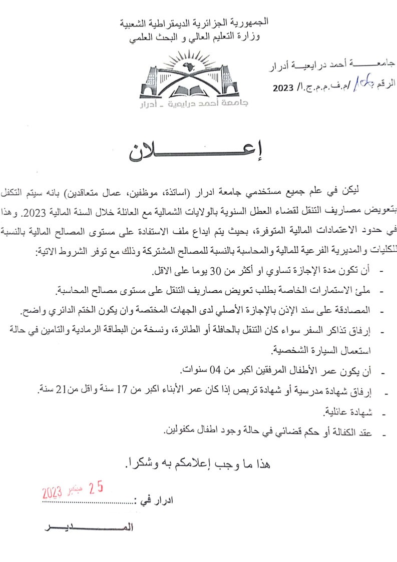 إعلان لجميع مستخدمي جامعة أدرار (أساتذة, موظفين, عمال متعاقدين) 2٬918 Share FacebookGoogle+البريد الإلكترونيTwitter