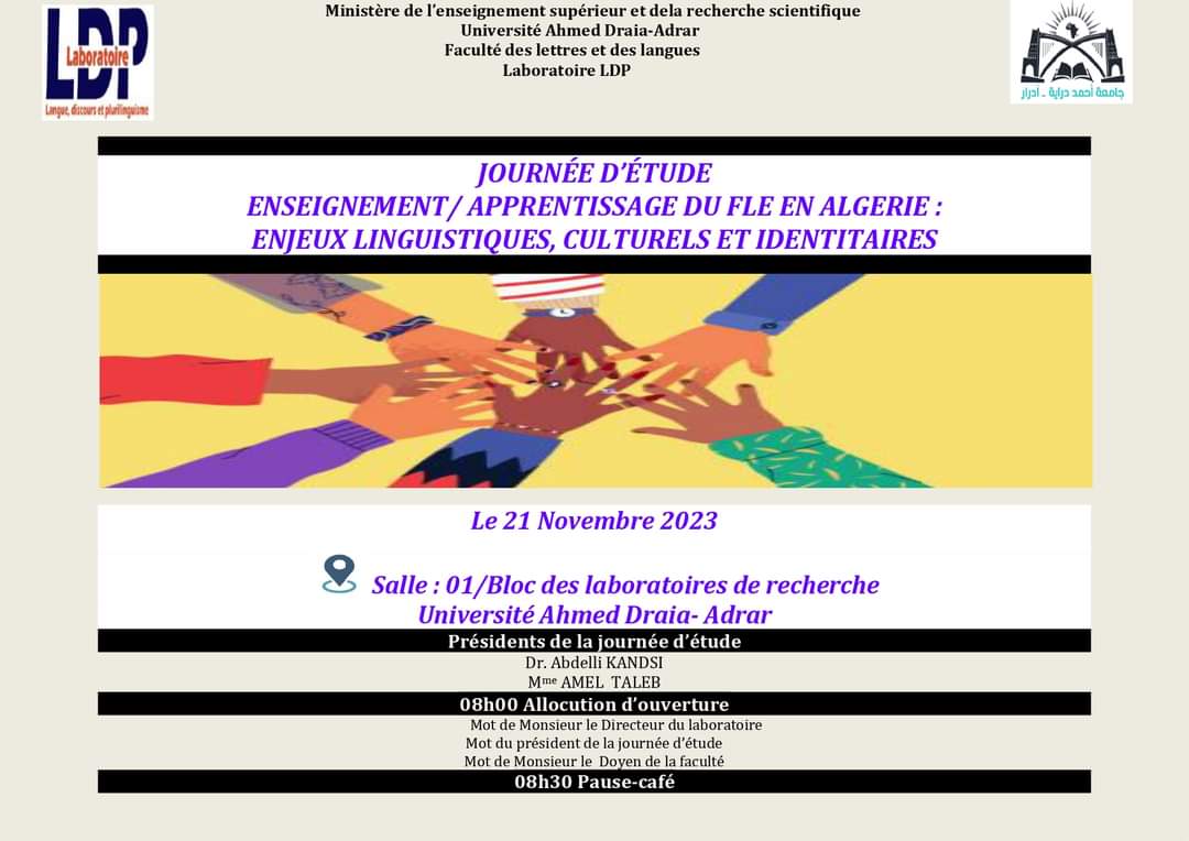 Programme de la journée d’étude ” Enseignement/apprentissage de FLE en Algérie : enjeux linguistiques, culturels et identitaires 2٬050 Share FacebookGoogle+البريد الإلكترونيTwitter