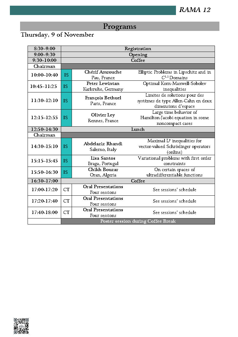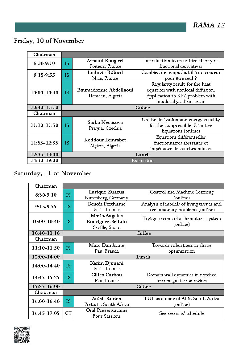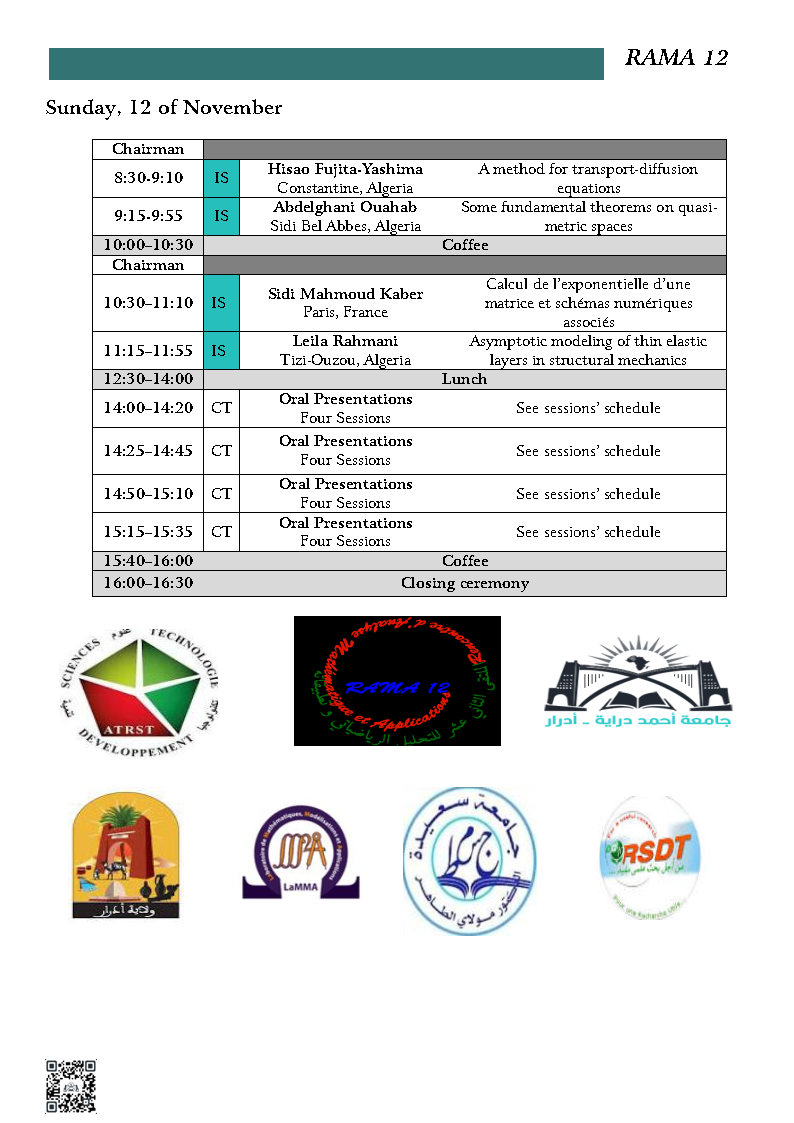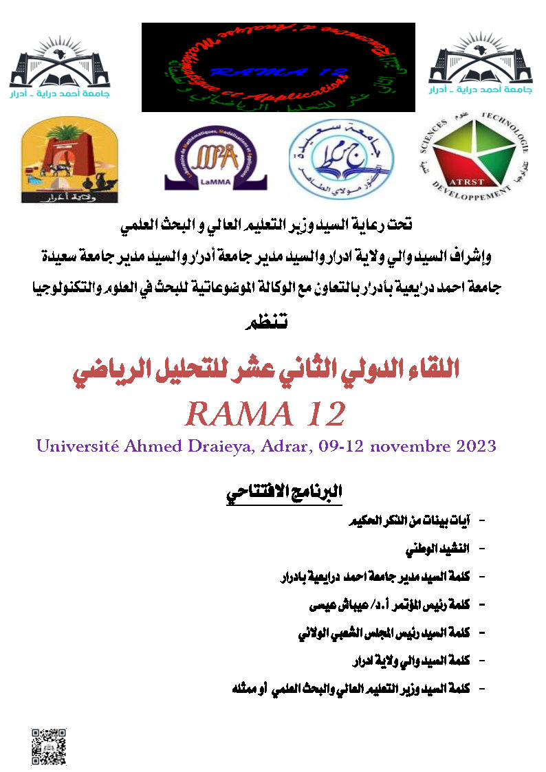 برنامج اللقاء الدولي الثاني عشر للتحليل الرياضي RAMA 12 Université Ahmed Draieya, Adrar , 09-12 novembre 2023 2٬685 Share FacebookGoogle+البريد الإلكترونيTwitter