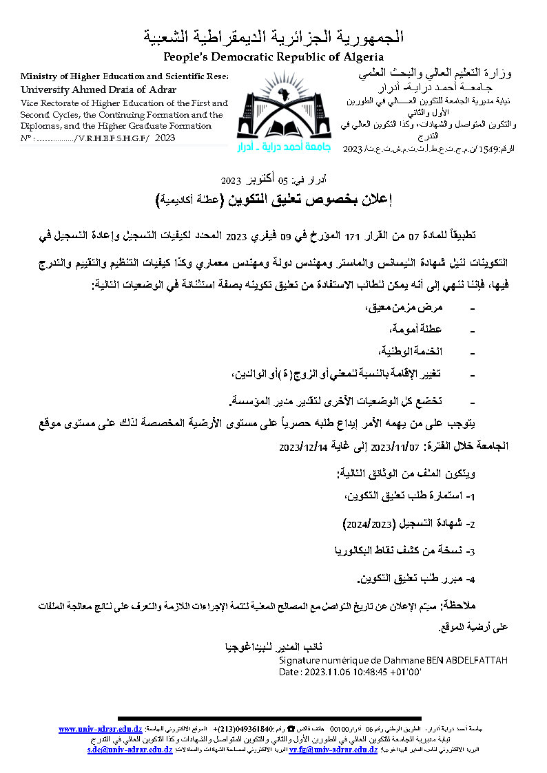 إعلان بخصوص تعليق التكوين (عطلة أكاديمية) للتسجيل يرجى الضغط على : استمارة تعليق التكوين (عطلة أكاديمية) 4٬881 Share FacebookGoogle+البريد الإلكترونيTwitter