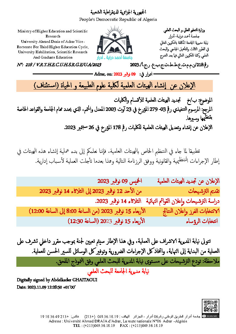الإعلان عن إنشاء الهيئات العلمية لكلية علوم الطبيعة والحياة (استئناف) للتحميل : استمارة الترشح لانتخابات الهيئات العلمية 833 Share FacebookGoogle+البريد الإلكترونيTwitter