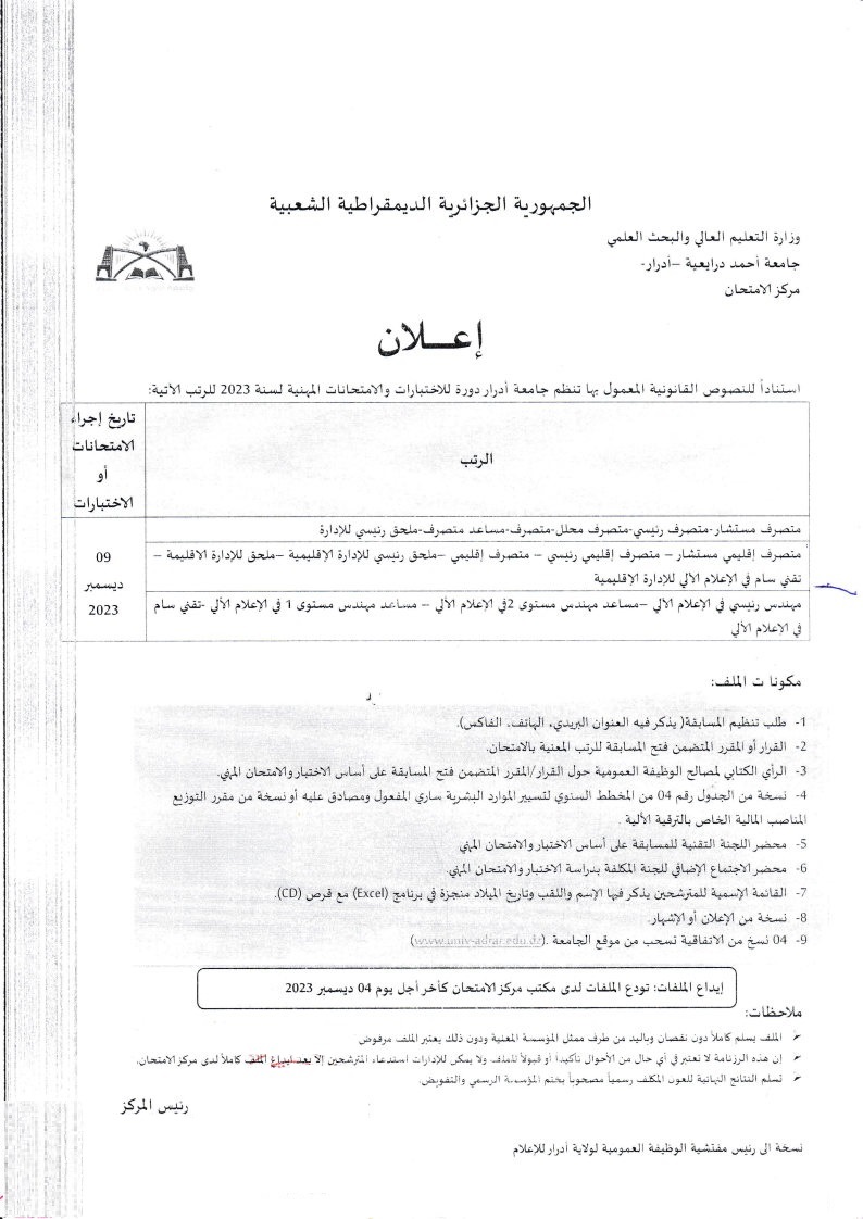 جامعة أدرار تنظم دورة للإختبارات والامتحانات المهنية لسنة 2023 لتحميل الاتفاقية : اتفاقية الامتحانات المهنية 649 Share FacebookGoogle+البريد الإلكترونيTwitter