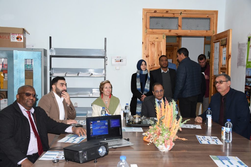بعدها قامت السيدة ستايسي داوسن الملحق الثقافي بسفارة اللولايات المتحدة بمعية رئيس الجامعة الاستاد بن عمر محمد الأمين بزياة مجمع المخابر حيث تلقت عرض عن نشاطات أبحاث المخابر في ميدان المخطوطات الطاقة الزارعة البيئة والاعلام الآلي