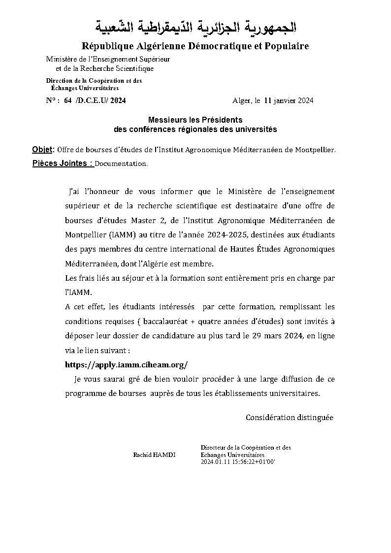 Offre de bourses d’études de l’IAMM Pour télécharger : Documentation IAM Montpellier 459 Share FacebookGoogle+البريد الإلكترونيTwitter