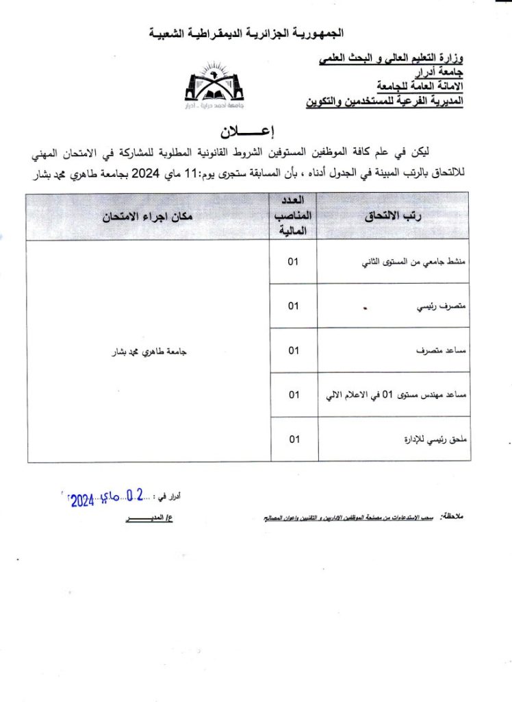 إعلان الى كافة الموظفين المستوفين الشروط القانونية المطلوبة للمشاركة في الإمتحان المهني 1٬140 Share FacebookGoogle+البريد الإلكترونيTwitter