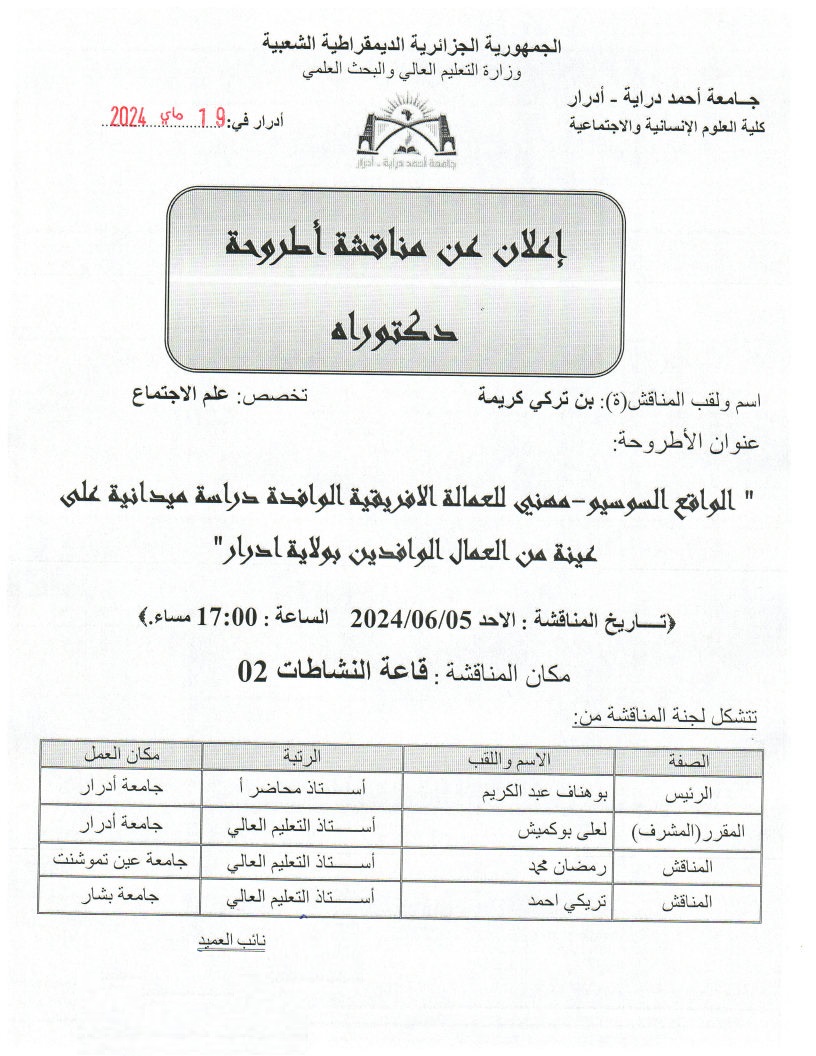 الواقع السوسيم-مهني للعمالة الافريقية الوافدة دراسة ميدانية على عينة من العمال الوافدين بولاية ادرار 443 Share FacebookGoogle+البريد الإلكترونيTwitter