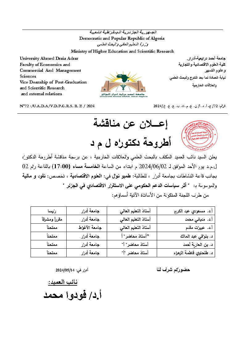 أثر سياسات الدعم الحكومي على الاستقرار الاقتصادي في الجزائر 677 Share FacebookGoogle+البريد الإلكترونيTwitter