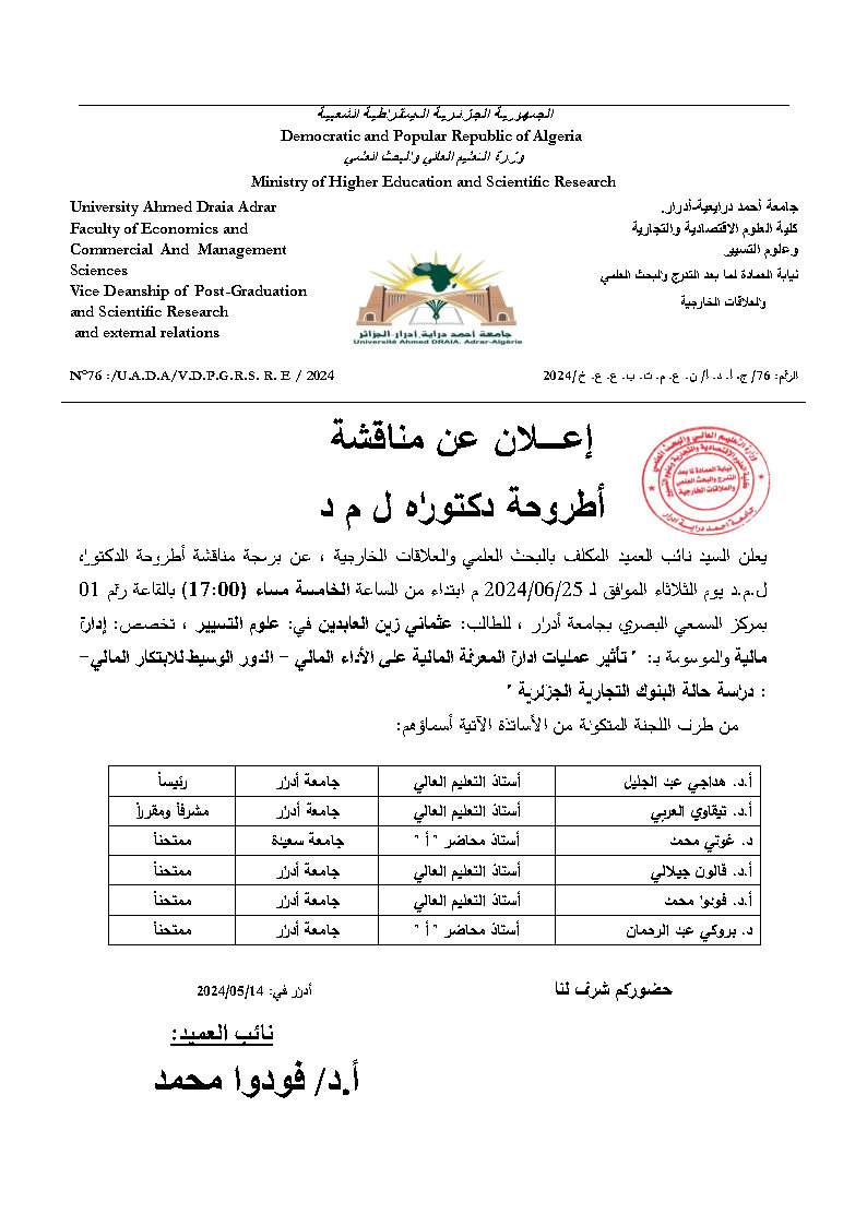 تأثير عمليات ادارة المعرفة المالية على الأداء المالي – الدور الوسيط للابتكار المالي – : دراسة حالة البنوك التجارية الجزائرية 849 Share FacebookGoogle+البريد الإلكترونيTwitter