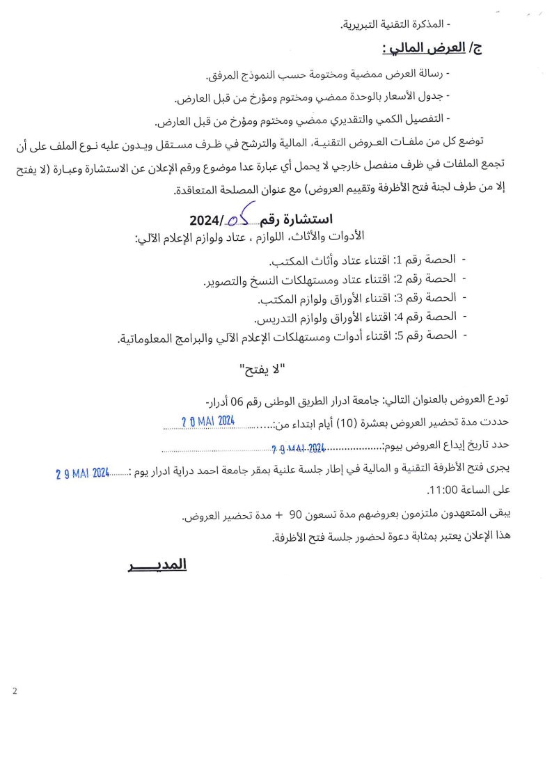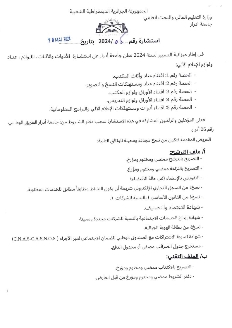 استشارة رقم 2024/05 المتعلقة بالأدوات والأثاث, اللوازم, عتاد ولوازم الإعلام الآلي لتحميل الاستشارة : استشارة متعلقة بالأدوات والأثاث, اللوازم, عتاد ولوازم الإعلام الآلي 843 Share FacebookGoogle+البريد الإلكترونيTwitter