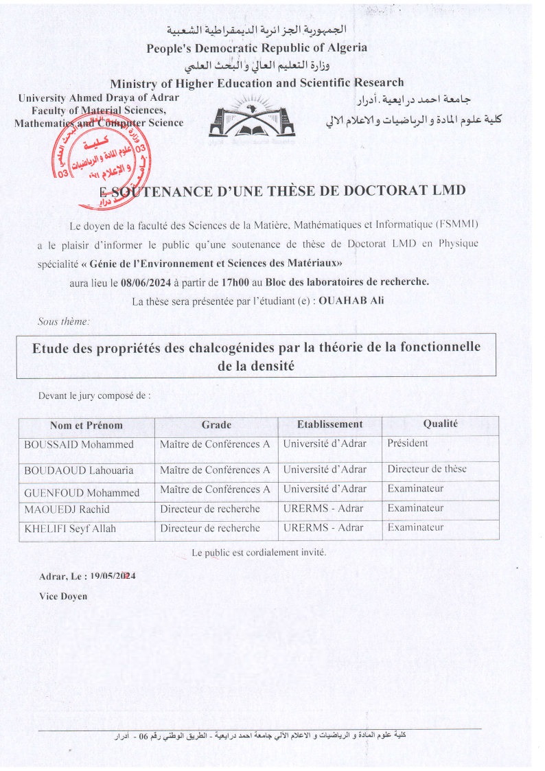 Etude des propriétés des chalcogénides Par de la densité la théorie de la fonctionnelle 541 Share FacebookGoogle+البريد الإلكترونيTwitter