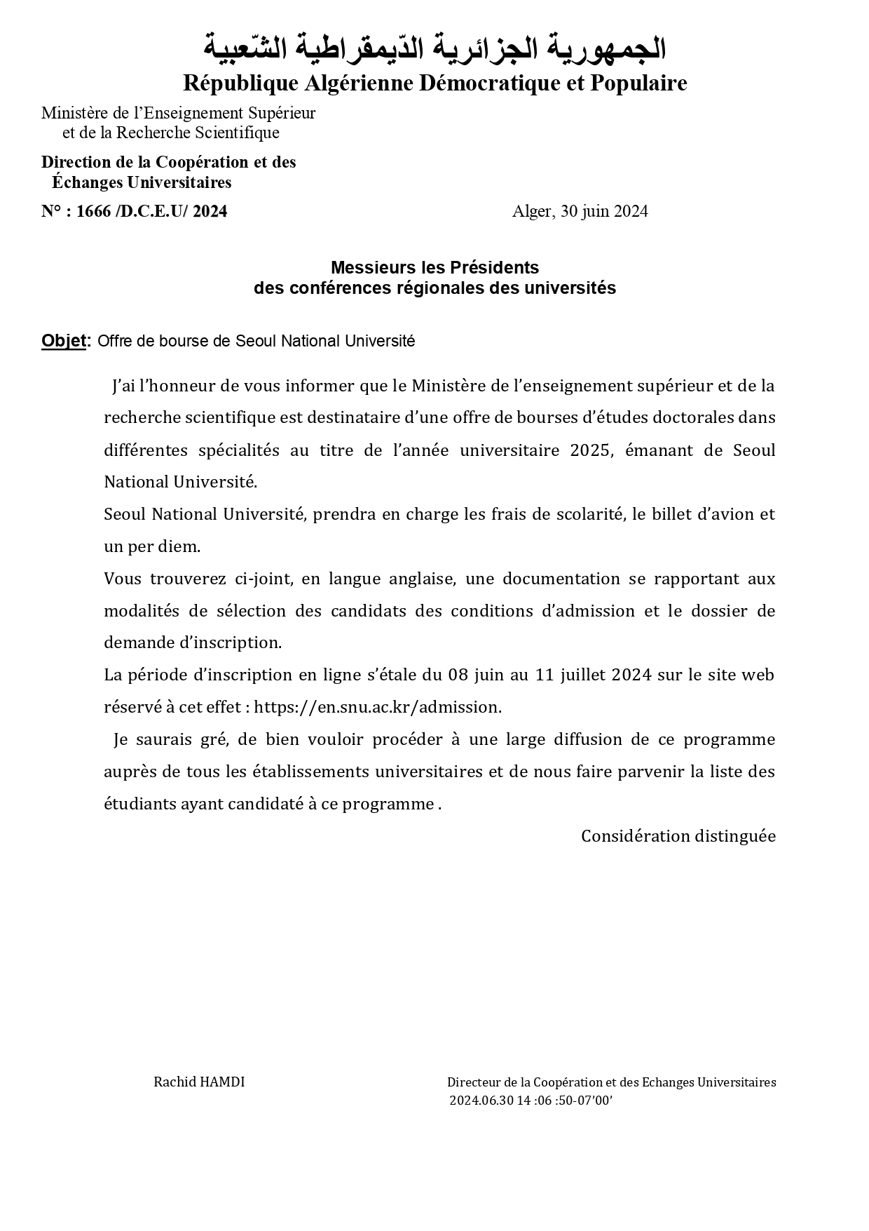 Offre de bourse de Seoul National Université Pour télécharger : 1- Application Guidelines for SNU President Fellowship Spring 2024 2- ★SPF Application form_Spring 2024 677 Share FacebookGoogle+البريد الإلكترونيTwitter